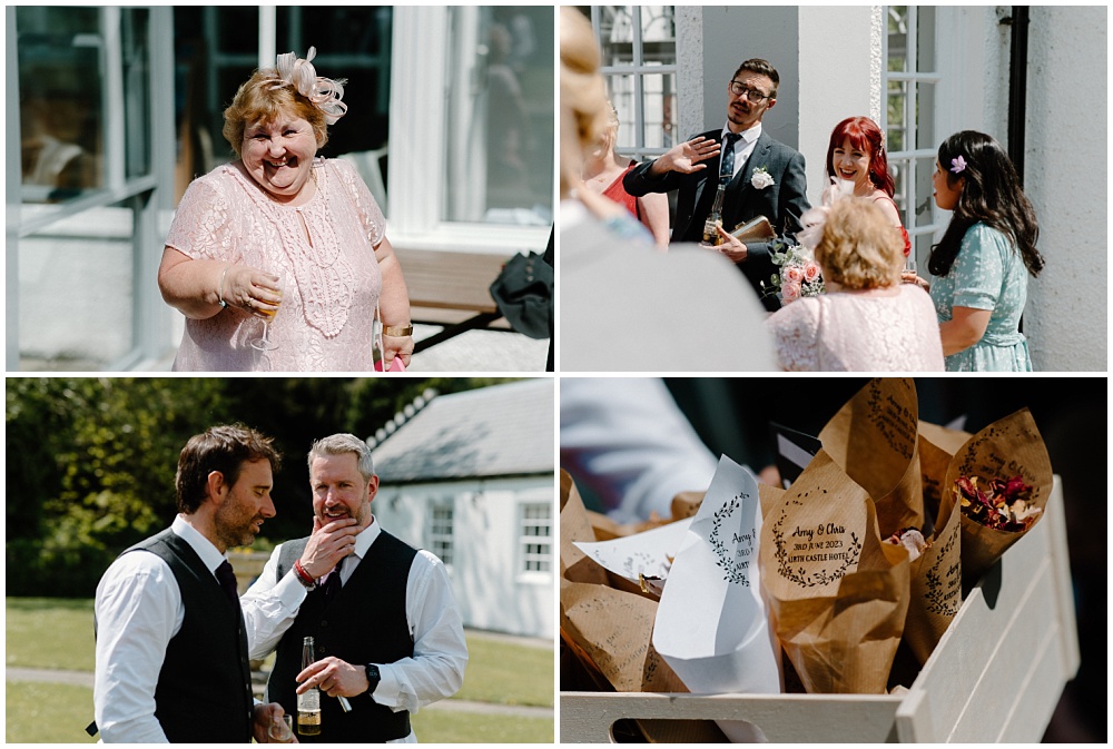 This was the first time I had been to Barony castle (its near Peebles) to photograph a wedding and what a debut it was. Amy & Chris were originally to be married in Airth castle but events transpired that they had to change their venue – I think they got a fantastic upgrade! What a lovely summers day it was and this wedding had it all. We had cats, castles, confetti, bridges, woods, 2 dresses and a whole lot fo laughs.