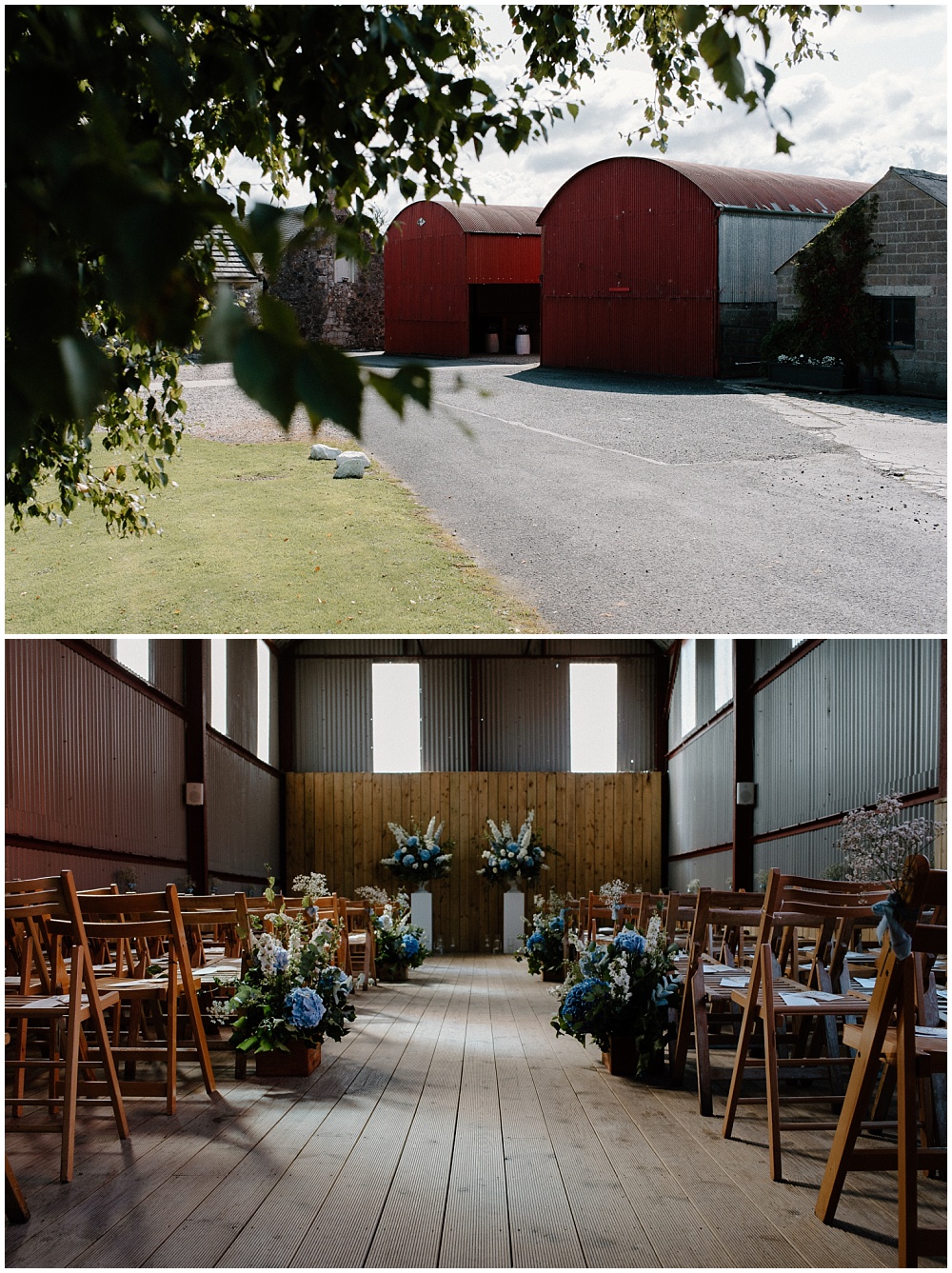 Dalduff Farm is a hidden gem tucked away in the Ayrshire countryside, offering a stunning backdrop for your special day. Its cosy, quirky and full of character – a photographers dream! Louise and Thomas chose this idyllic location for their wedding, drawn to the rustic charm and natural beauty that surrounded them. The big red barn provided a dreamy setting for their ceremony, while the rustic cottage was transformed into a magical reception venue, complete with twinkling fairy lights and elegant decor. It has such a nice vibe to it. I absolutely loved how we could go into the wheat field next door for some pictures, it was the perfect time of year for it.